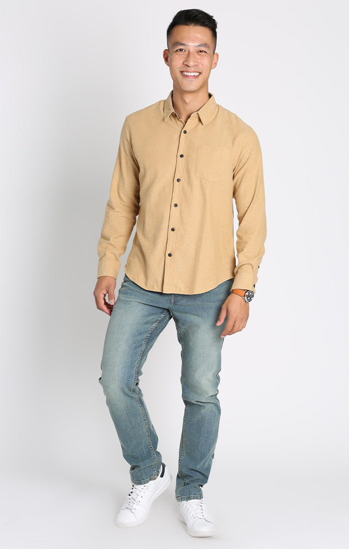 Our signature premium midweight brushed twill shirt in a one pocket body.