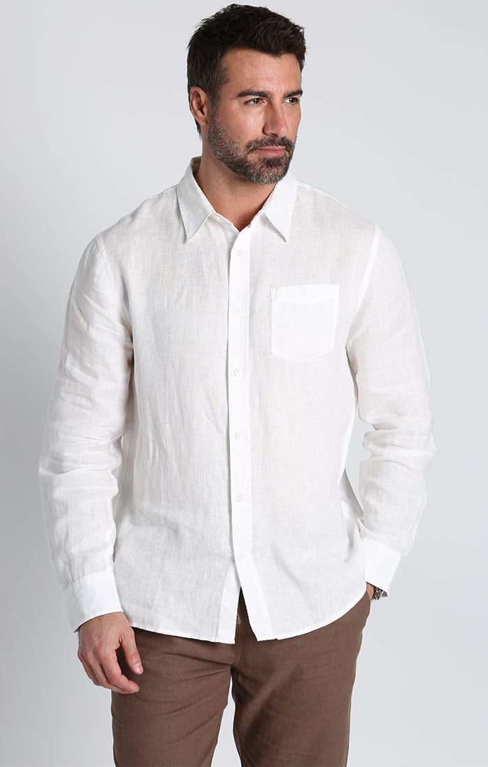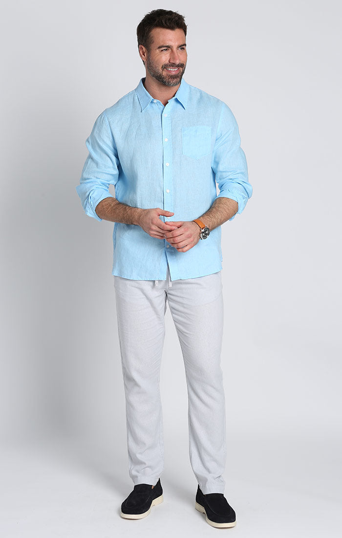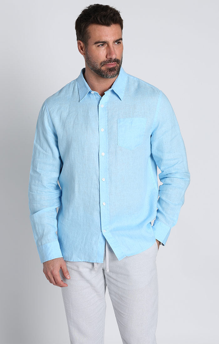 Our signature summer weight linen fabric in a one pocket long sleeve body.