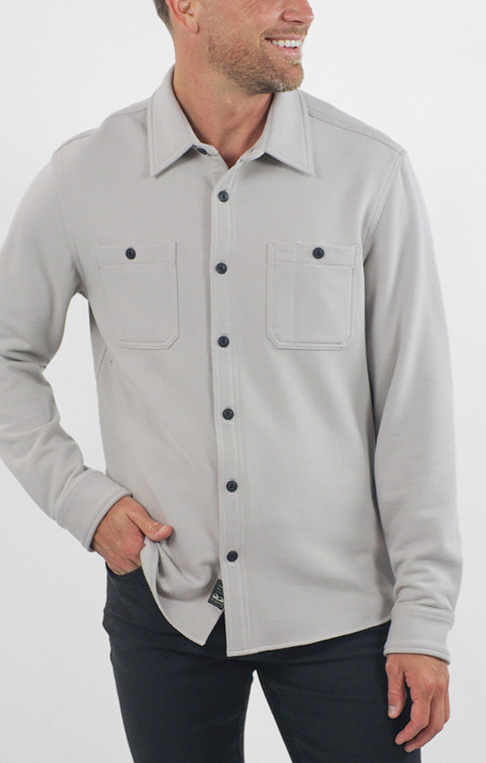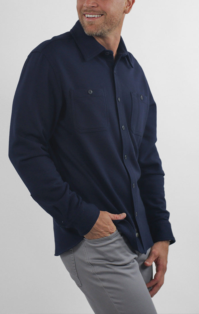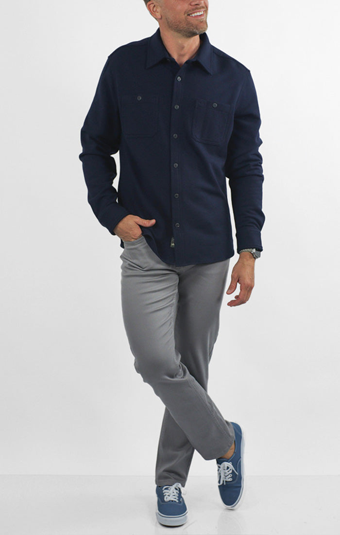 An exciting update to a wardrobe staple! The versatile look of a classic Workshirt, engineered in a insanely comfortable stretchy soft touch fabric and designed to feel like you’re wearing your most comfortable cozy sweatshirt.