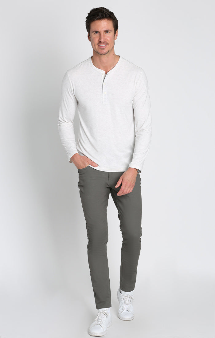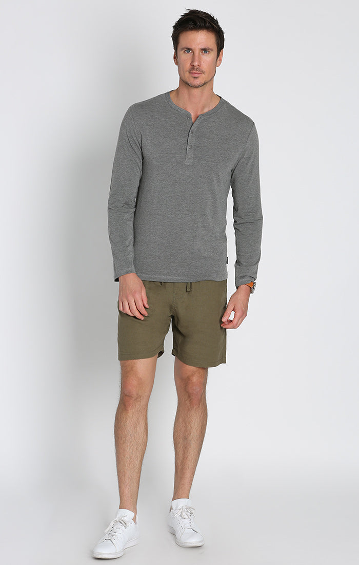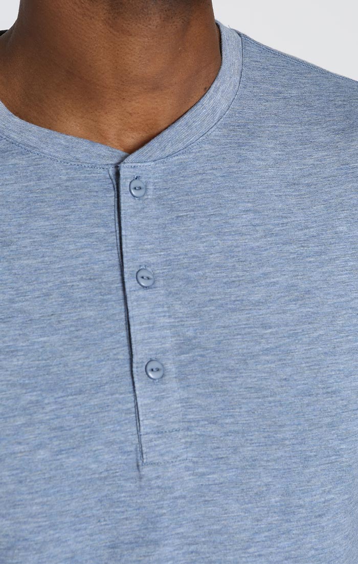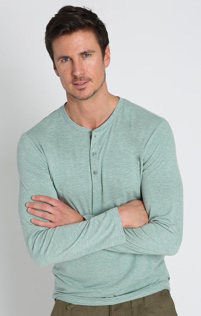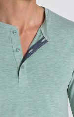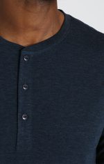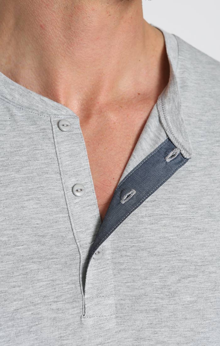 A soft and easy light weight polyester viscose blend fabric in a classic 3 button long sleeve henley.