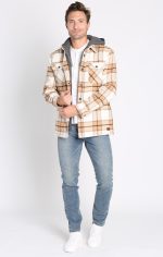 A unique wool blend CPO Jacket with quilted lining and side pockets.